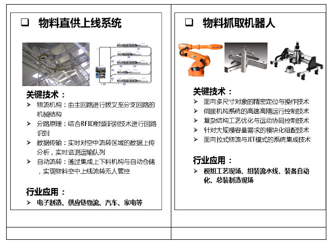 針對工廠定位、識別、檢測、測量方面需求,研發工業視覺算法、智能相機、高速視覺系統等視覺傳感器及其系統,線激光檢測、三維型面測量等基于光學的幾何量檢測傳感器,實現工廠現場數據采集與通信的智能I/O控制器,以及復雜工廠環境下的RFID集成傳感器。